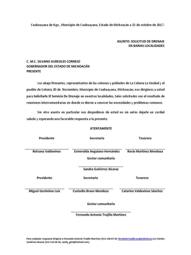 Carta Solicitud De Drenaje / Respuesta Cerrejon A Carta Solicitud Ong Cerrejon / Solicitud de desazolve de redes de drenaje sanitario, drenaje pluvial y/o fosas sépticas.